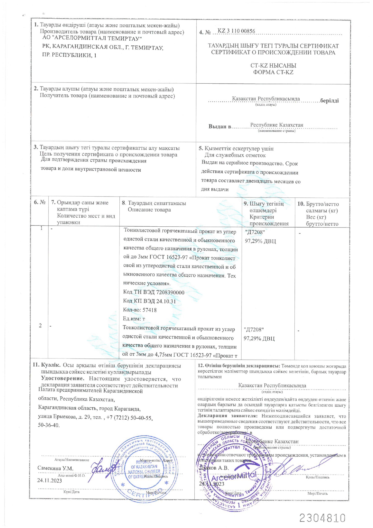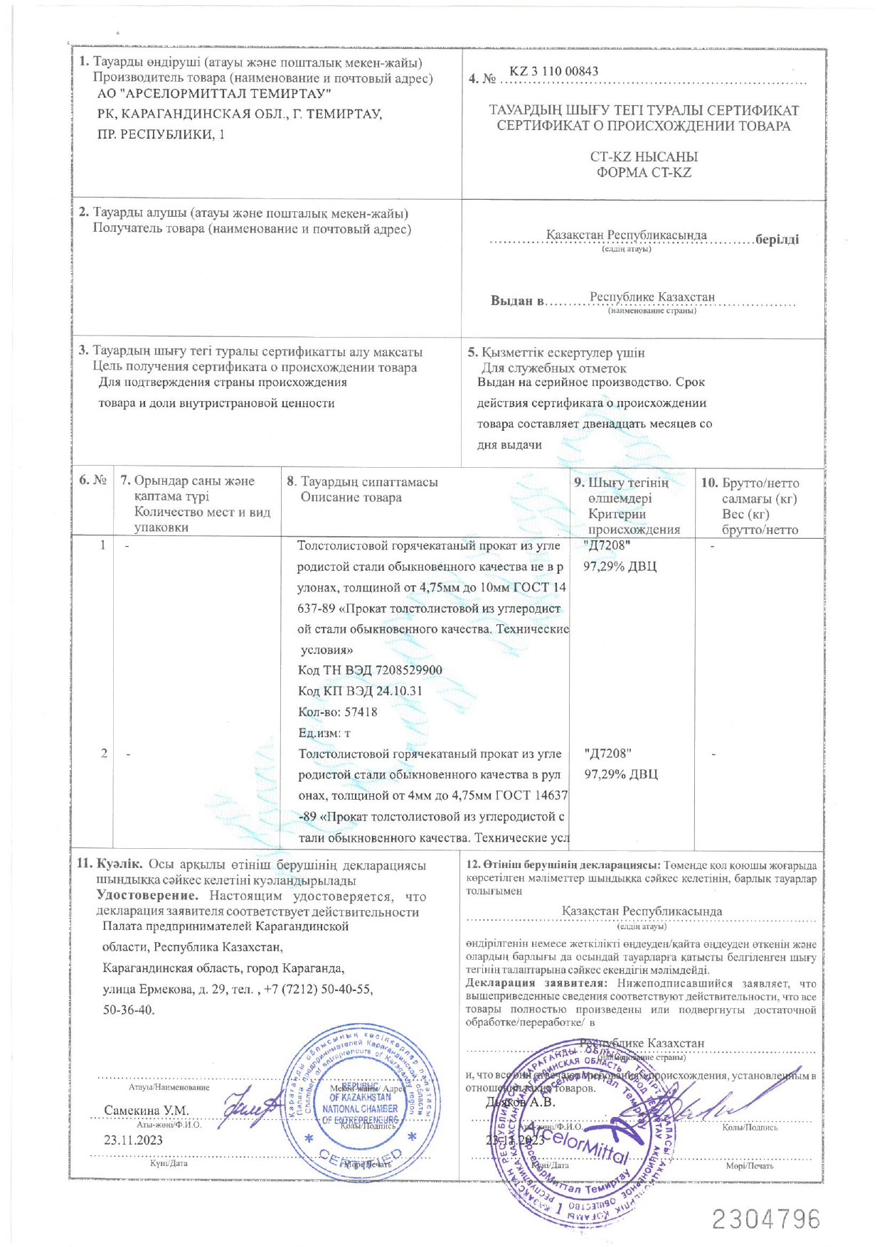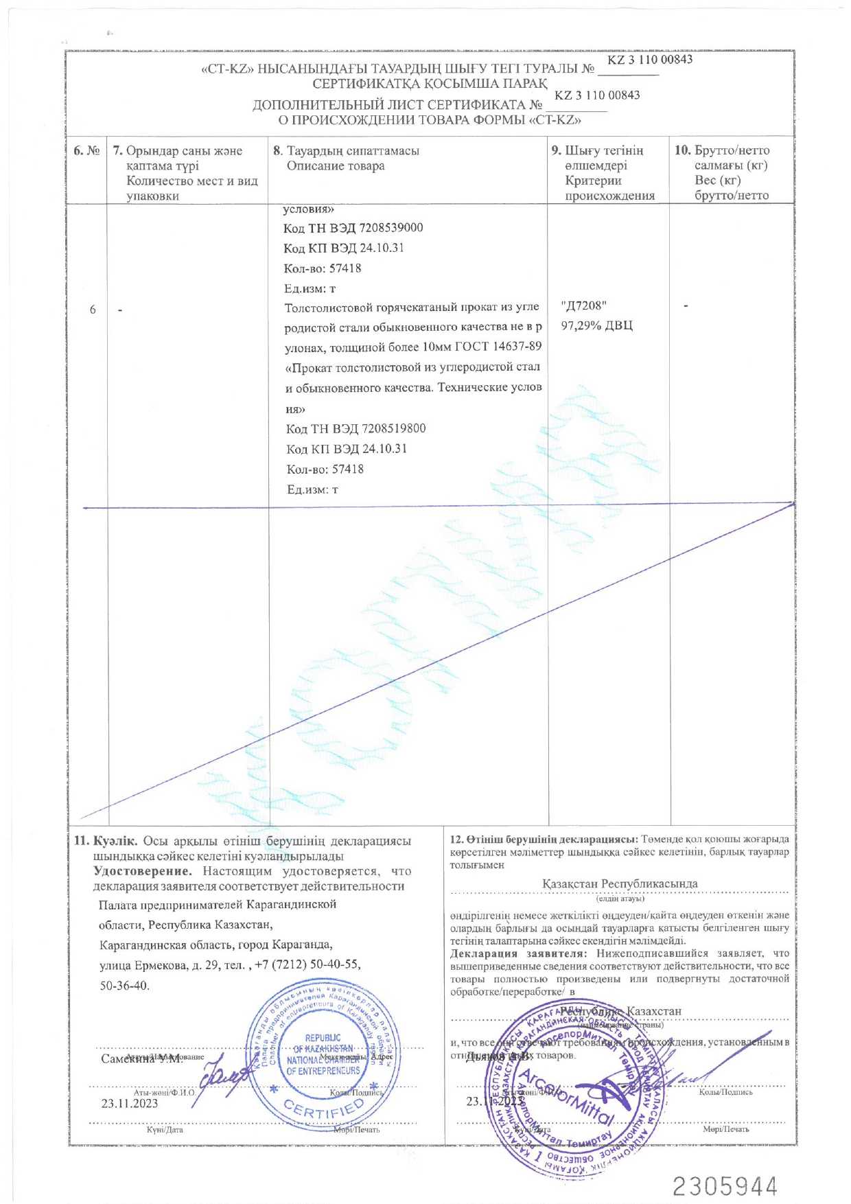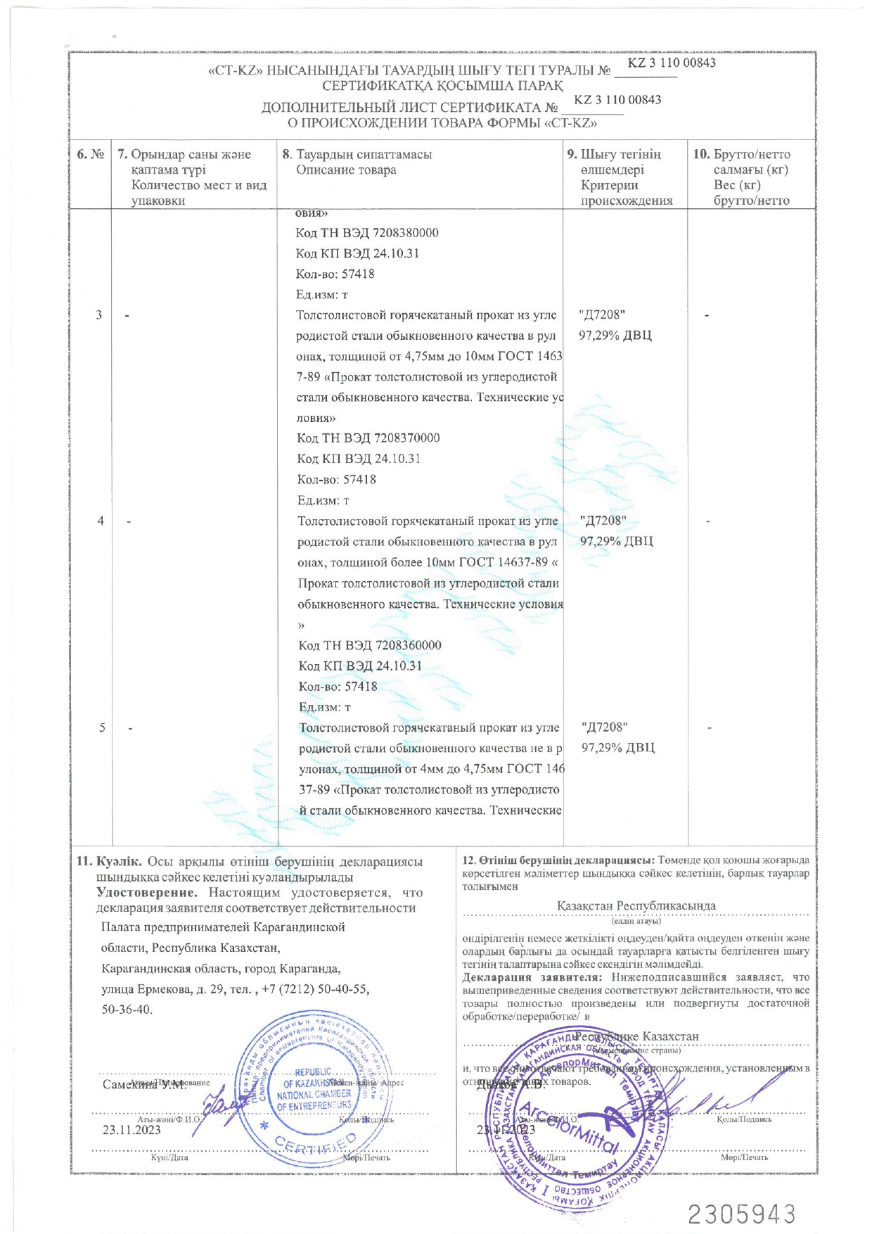 Кол-во отгруженной стали за 2023 год: 3,2 млн. тонн.